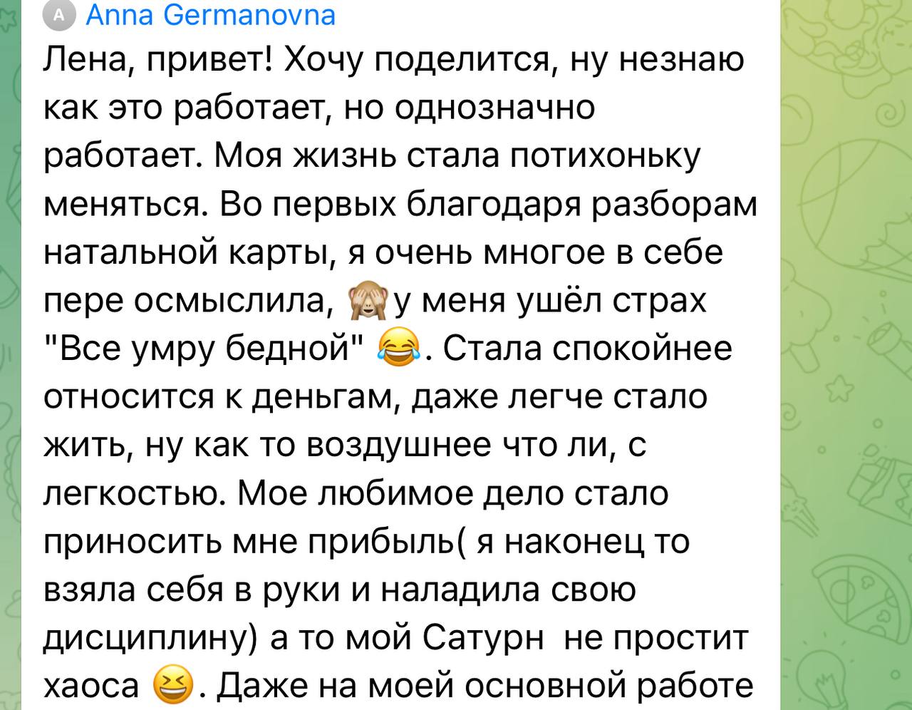 Ты не просто узнаешь, в чем проблема - ты получишь пошаговые инструменты астропсихологии, чтобы день за днем перепрошивать свою жизнь осознанно: не ломая себя, а возвращаясь к своей Душе, своей линии судьбы и своей энергии